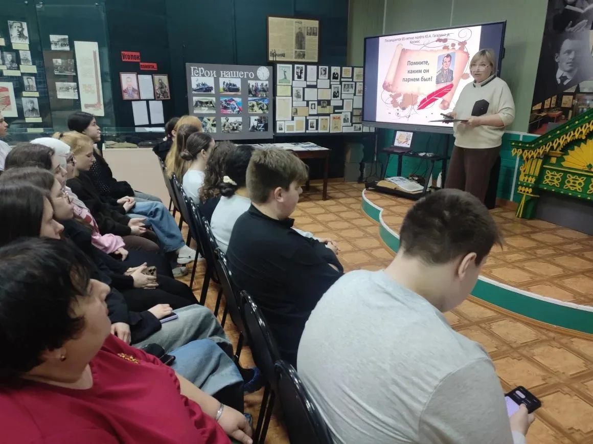 🎤 Сотрудник музея, Мелёшкина Марина Константиновна, провела для ребят увлекательную презентацию о жизни Героя Советского Союза Юрия Алексеевича Гагарина. Студенты узнали всё: от истории его семьи и школьных лет до тренировок и того самого триумфального полёта, когда Гагарин облетел Землю и вернулся героем! 🌍✨