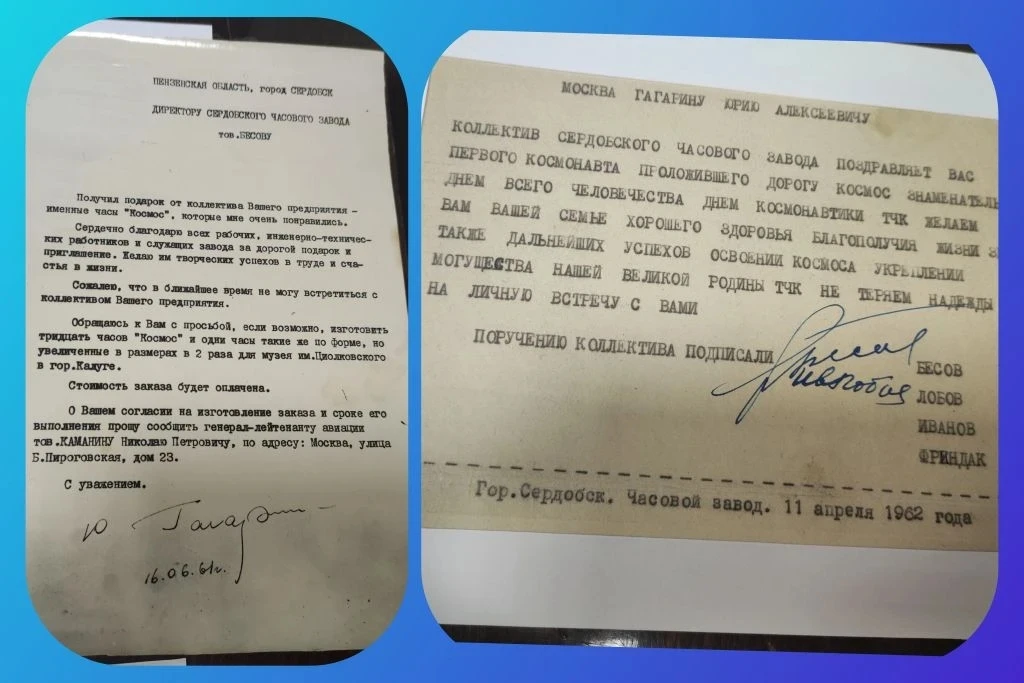 🤩 Но самым невероятным открытием для всех стала история о связи Сердобска с космосом! Оказывается, работники Сердобского часового завода подарили Гагарину сувенирные настольные часы «Космос» в память о его полёте на корабле «Восток-1». Подарок вручили 1 мая 1961 года, и часы так понравились первому космонавту, что он в благодарность прислал заводу свою книгу «Дорога в космос» с автографом! 📚⌚