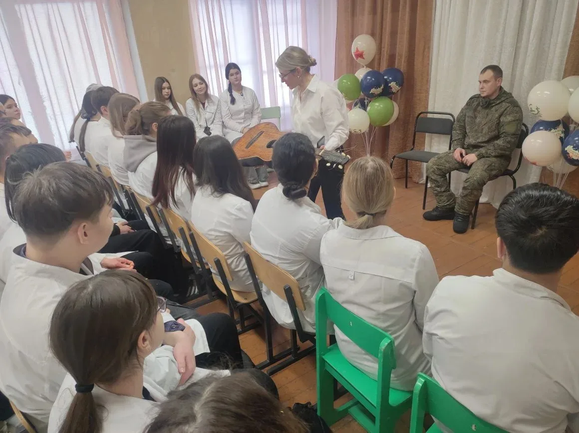 💚В продолжение наступающего праздника активисты Молодëжного парламента и главный специалист аппарата Администрации Сердобского района Моисеева Анна Сергеевна организовали встречу с участником СВО, действующим военнослужащим, творческим человеком, Александром Алеско. Александр рассказал о своей непростой службе, ответил на вопросы студентов о боевых друзьях, о военном долге, о качествах характера настоящего мужчины.